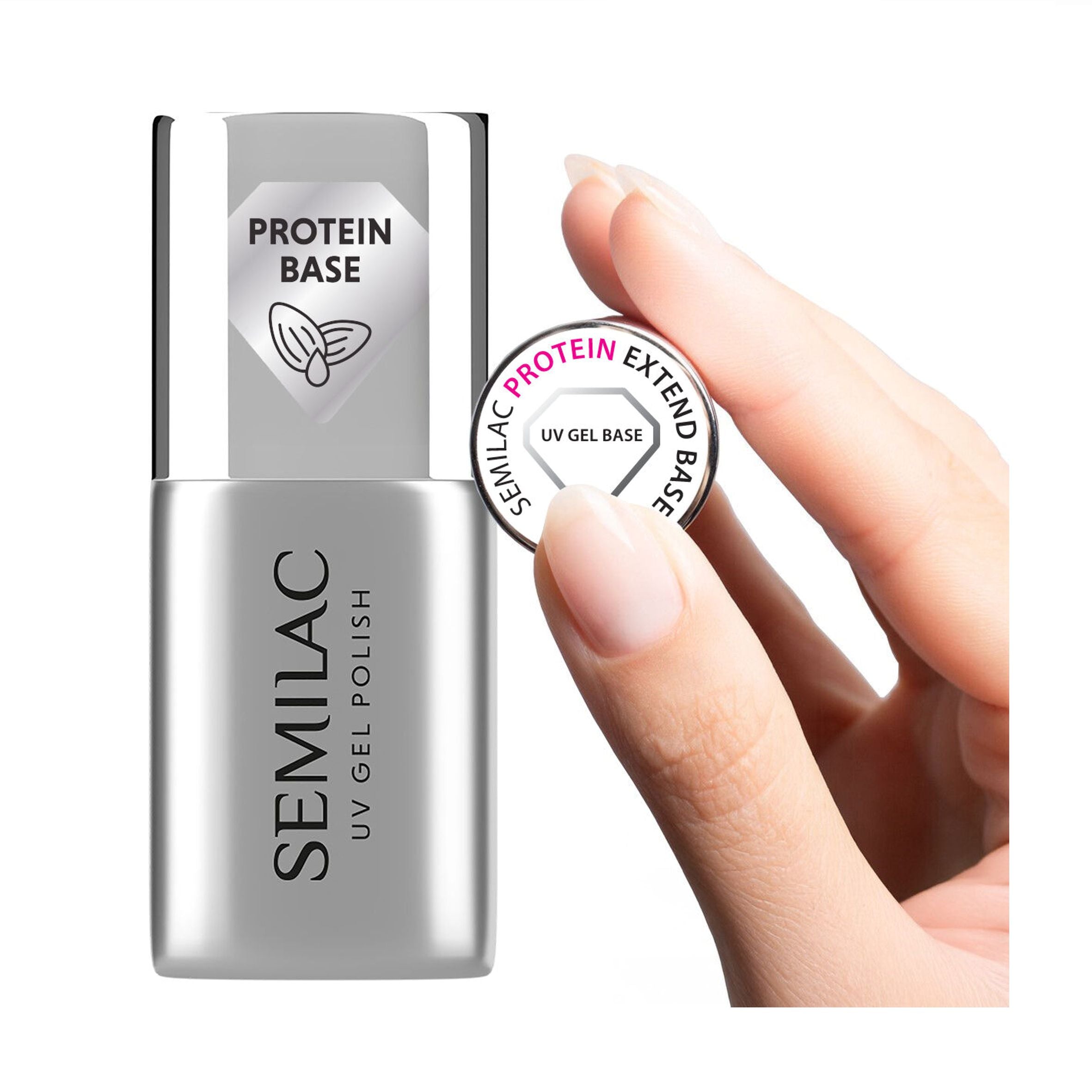 Base semipermanente transparente con proteína de almendra que combina facilidad de aplicación, fuerza y flexibilidad en una sola fórmula.