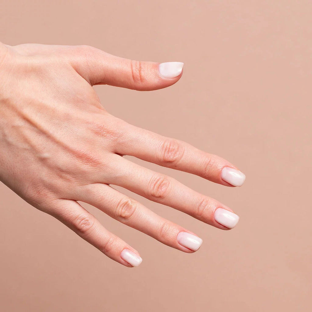 Una Cover Base flexible en tono leche de coco, diseñada para adaptarse a cualquier placa ungueal y fusionarse perfectamente con los tonos naturales de la piel.
